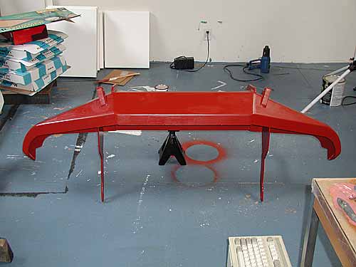 The final two coats of semigloss black enamel were applied about 24 hours apart, first with a brush and then rollered to even out the finish. The enamel dried pretty fast, so after a few hours it was possible to move the bumper a bit to paint the parts that were blocked by the jack stand I used to support it. I probably only ended up using a pint at most--plenty left over for touch-ups. Below are a few pictures of the final painting stage before the bumper was installed.