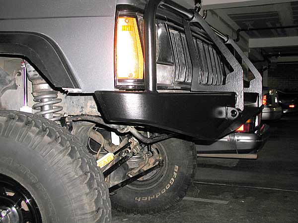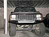 The bumper weighs in at about 90 lbs, and combined with the winch I'm going to run, I figured I would lose at least an inch of lift in the front after everything was installed. As a preventative measure, I added another factory isolator ( 5/8" I think) and a 1" steel spacer in front, so now I'm running about 7.5" or a little more in front. It was a lot of fun trying to stuff those 4.5" ZJ coils back in after adding another 1.5"+ of spacers! Funny thing is, now the Jeep sits about level, where before it always had a slight rake from rear to front unless loaded with gear. Steering is a little sloppy now, like I'm driving a dump truck, but I figure it will settle a bit more once the winch is on. I will be redoing my steering anyway and junking the Rusty's stuff when I get a job and have money to spend. I may also have to add a 1" block in back to regain a level altitude when fully loaded