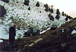The Jeep was stock with worn-out radial tires. Probably could have benefitted from som real tread and a locker or two. It's hard to tell how steep the trail is from the pic's, but I had trouble just standing still on the slope long enough to snap them.