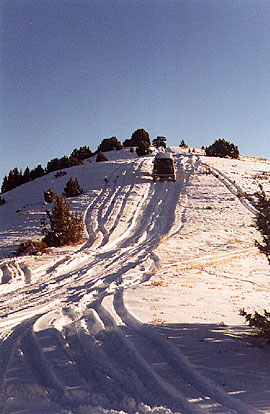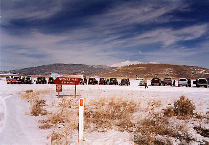 The 5 Mile Pass OHV Area and the neighboring "Charlie's Trail" were the setting for Utah 4-Wheel Drive Associations' winter trail run. This designated off-road area is literally covered with trails (the remnants of early mine exploration) and is one of the closest places to go wheeling for people who live in Salt Lake. You get there by heading West from Lehi (about 25 miles South of Salt lake) throught the small town of Fairfield on state route 73, just North of Utah Lake.