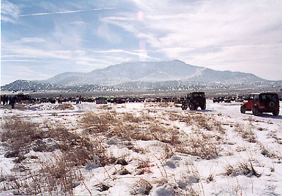 Here's a good shot of the many different vehicles airing down...Charlie's Trail is in the foothills of the mountains in the background (south)