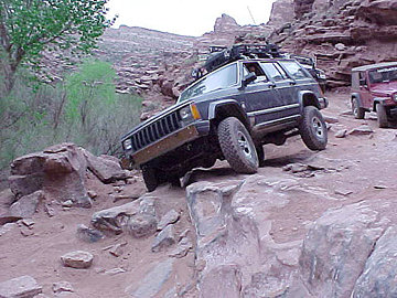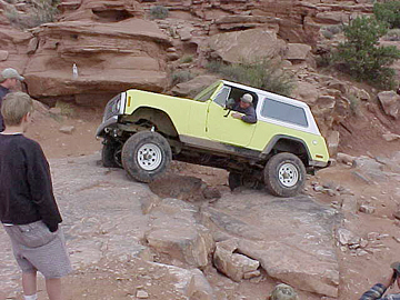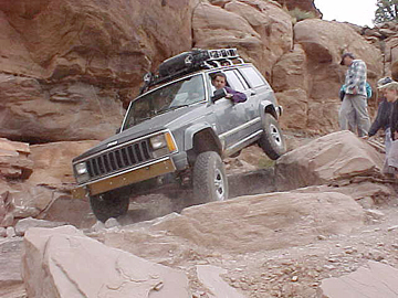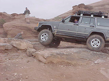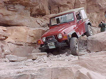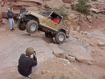 The shots below were taken on the 4-rated Cliff Hanger trail (also known as Amasa Back) during Easter Jeep Safari '99. Thanks to the two guys in the red TJ (second and 4th rows) for taking these shots with their cool digital camera!