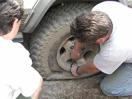 The only mishap on day three was a cut valve stem on Mark's XJ