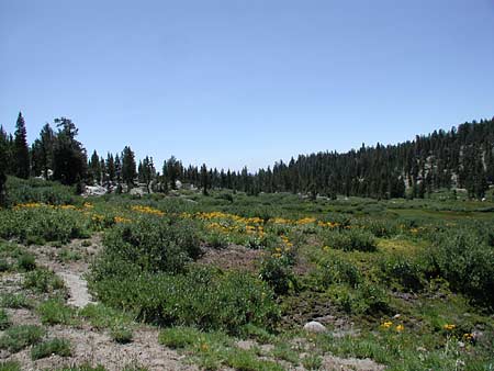 meadow and above the tree line onto a big dome. At 10,100 feet,