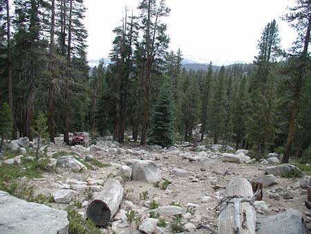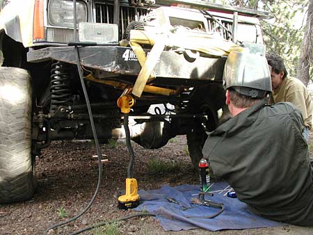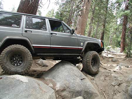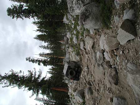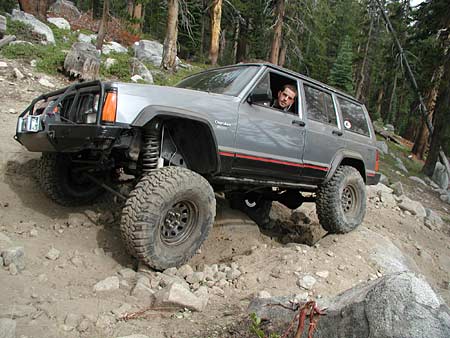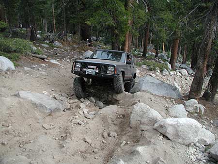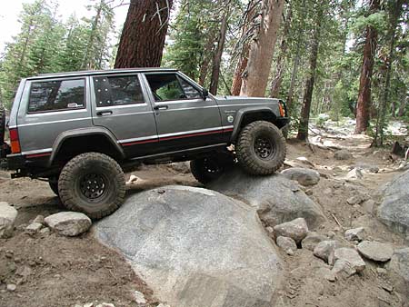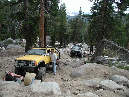 By the time we made it to the upper parking lot, I needed a beer in a big way. We aired up, filled the overflow bottle with about 3/4 of a gallon of water, and headed back dow toward Stockton. Fun day of wheeling, but I think I'll stick to the rocks unless I'm chained up. I definitely need to install a tranny cooler this summer. Yeeehaw!