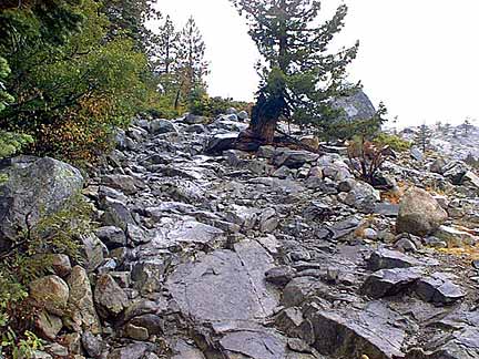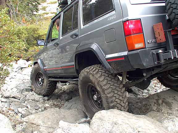 The wheeling is very rough on this trail, which is ranked by many as tougher than the Rubicon. Every Jeep that passed us had major body damage, and it's no wonder considering all the huge rocks and tight spots on the trail. When wet, it can be pretty scary, especially if you're traveling solo and at all concerned about making it back out to the interstate.