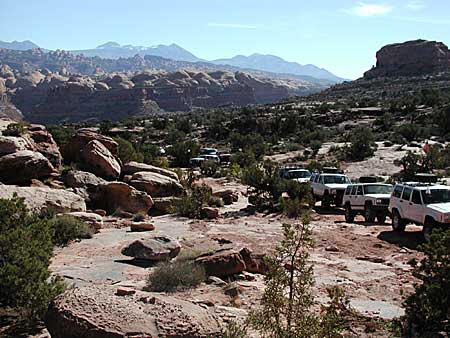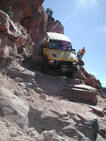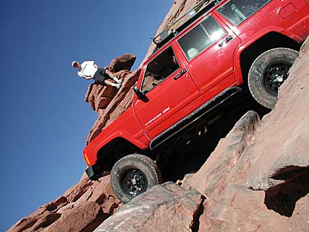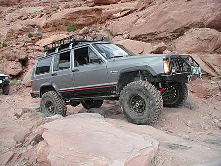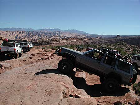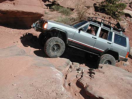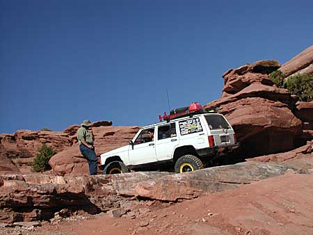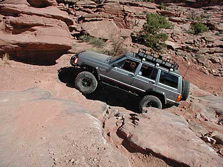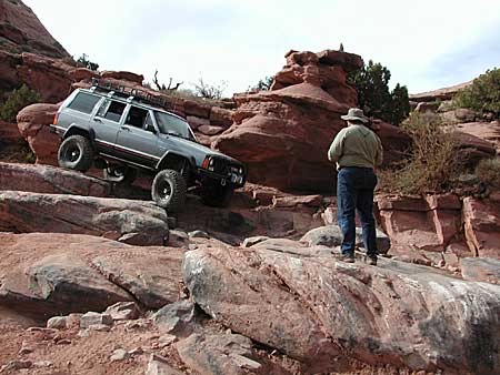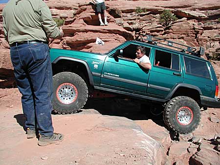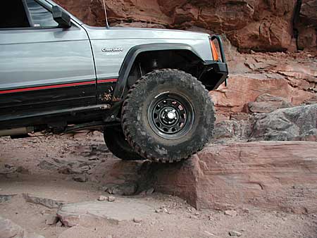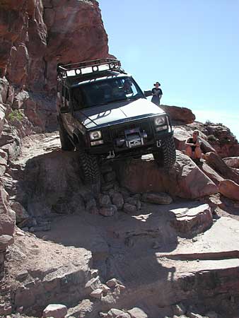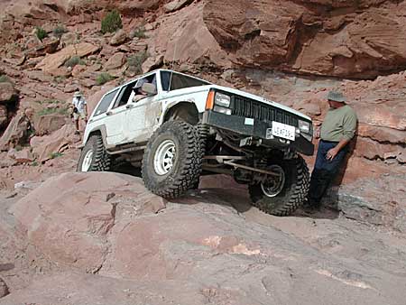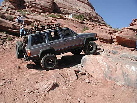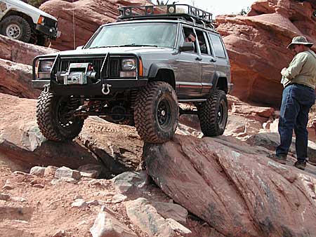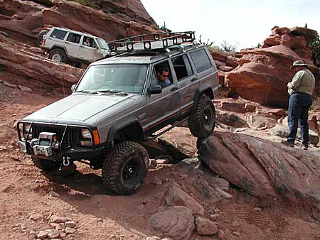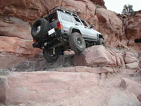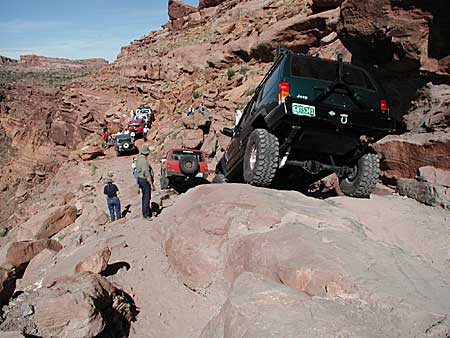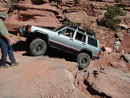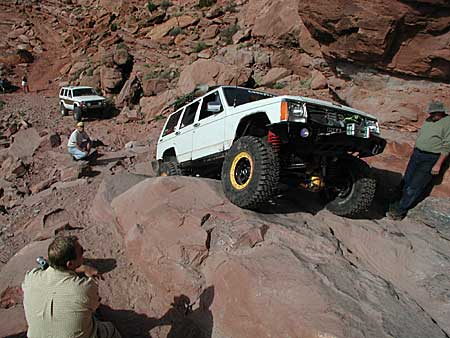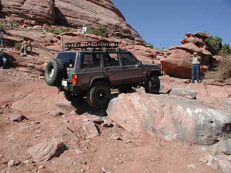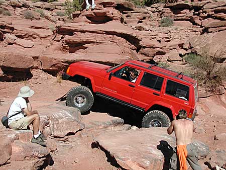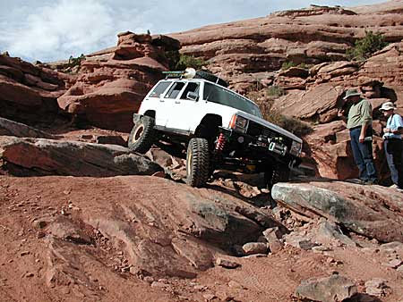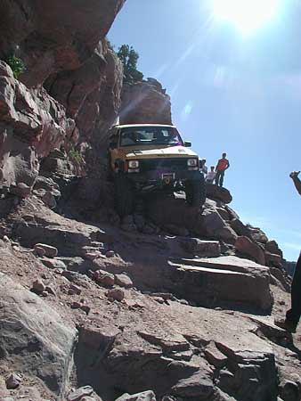 Cliffhanger was the only trail I ran during Fall Fling that I had been on before (check out the first trip during easter Jeep Safari). My earlier attempt was in the Hedgehog, and between the carb flooding every 5 minutes, too tall tires and too high a gearing in the axles, I didn't have much time to enjoy the trail. I had to bump every ledge a lot harder than I wanted to and my brakes were pretty sad too. Well, this year was a blast with good gearing, wider tires, and of course a better driver behind the wheel!