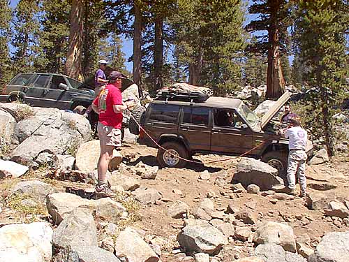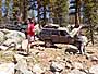 We ran into a group of Toyotas about halfway down with big tires and low gears. One of the guys worked for Marlin, and his truck looked bulletproof. I also saw a guy who stopped to check out my Jeep while it was spewing coolant all over the place on the drive up to camp. He was in a very trashed Samurai that looked like it had been rolled more than once. His group was doing the trail in the opposite direction, and they were doing it in one day rather than two! That would suck!